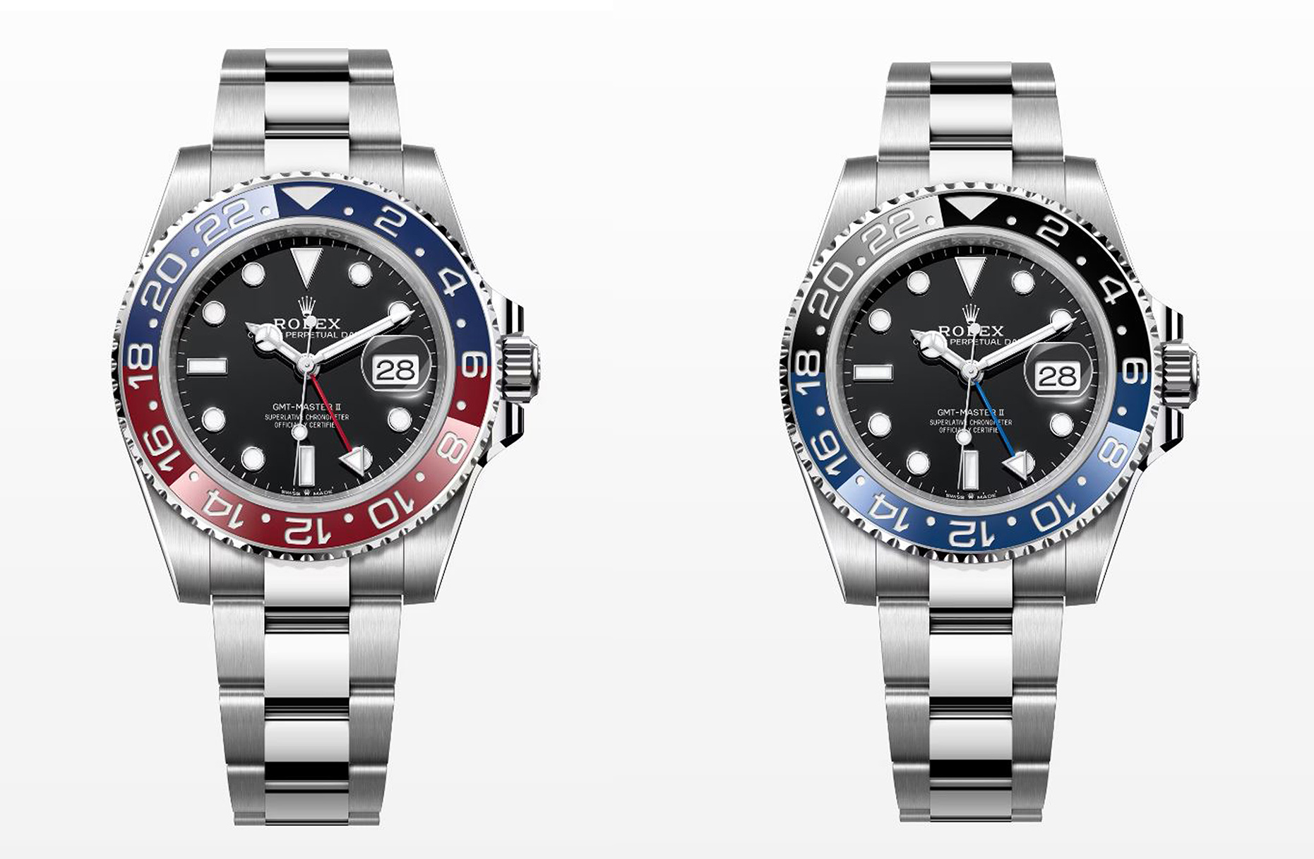 劳力士GMT Master II ‘百事’手表,左边,和劳力士GMT Master II ‘蝙蝠侠’手表,右边。来源:劳力士
