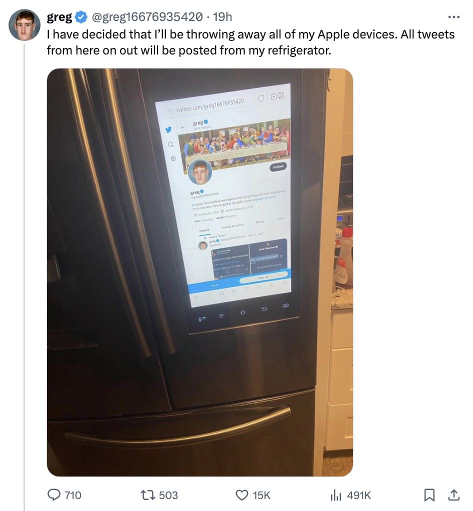 我们现在进入苹果进军人工智能的第二天。进展如何?一方面,有这个人宁愿从冰箱发推特一辈子,也不愿将苹果的智能系统交给他的iPhone: