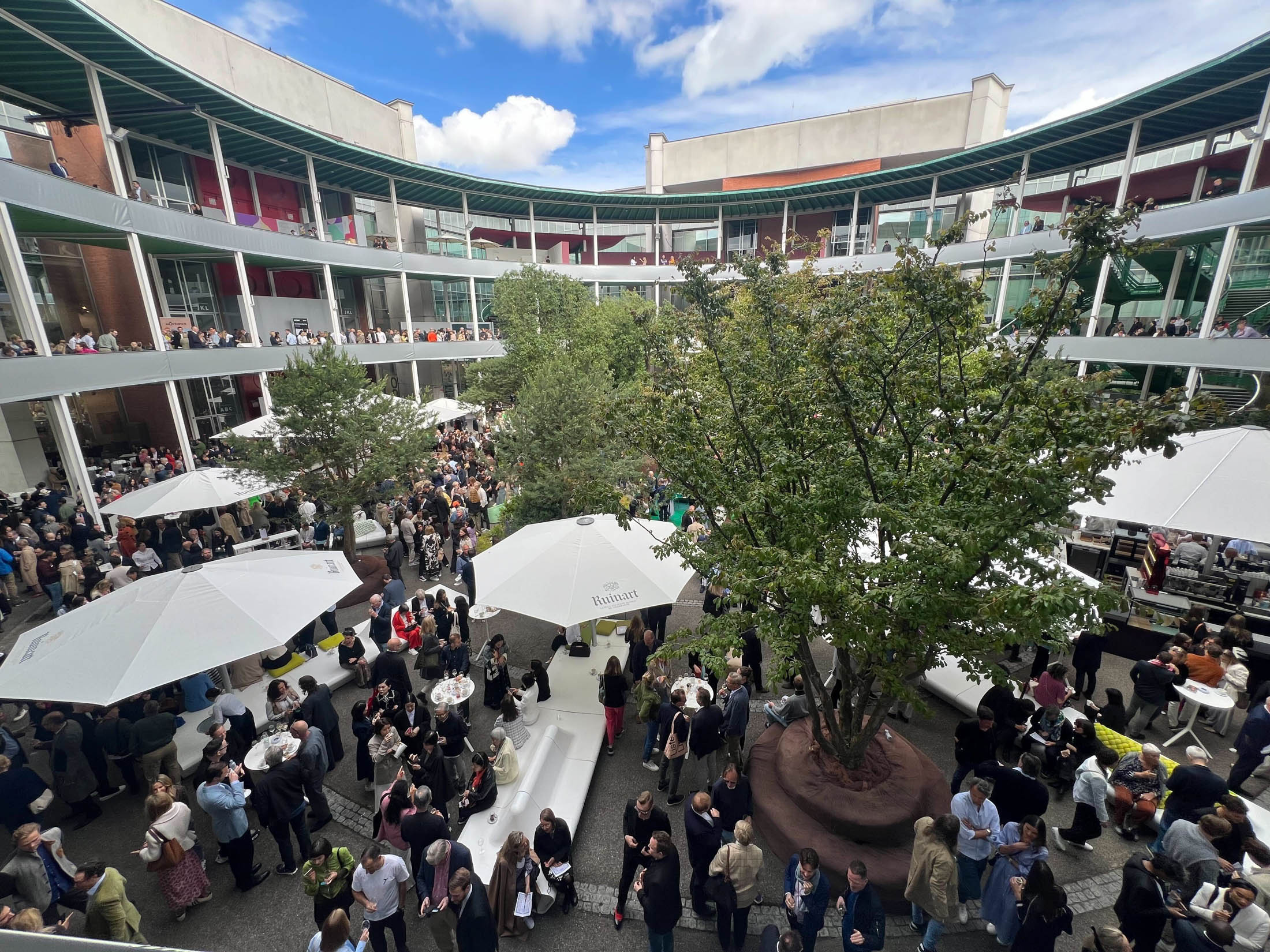 第一个问题是在周二上午10点回答的,当时一群穿着得体、主要是年长的贵宾在会展中心寒冷的内部庭院里颤抖着,他们在年度展前欢迎早餐期间用香槟和浓缩咖啡加强自己。