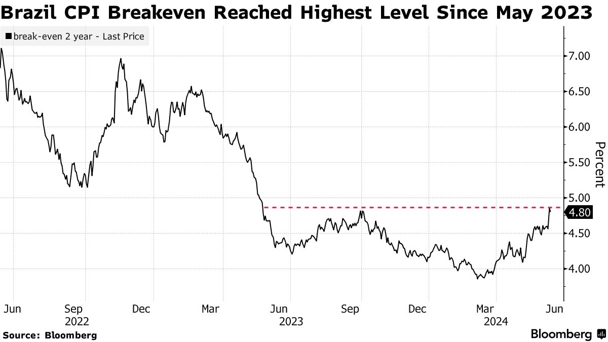 这种变化背后有合理的原因。巴西的两年通胀预期已上升至4.85%,远高于中央银行未来几年的2-4%通胀目标。关键的中央银行官员,包括行长罗伯托·坎普斯·内托,表示通胀预期的脱锚是一个挑战,特别强调2025年。