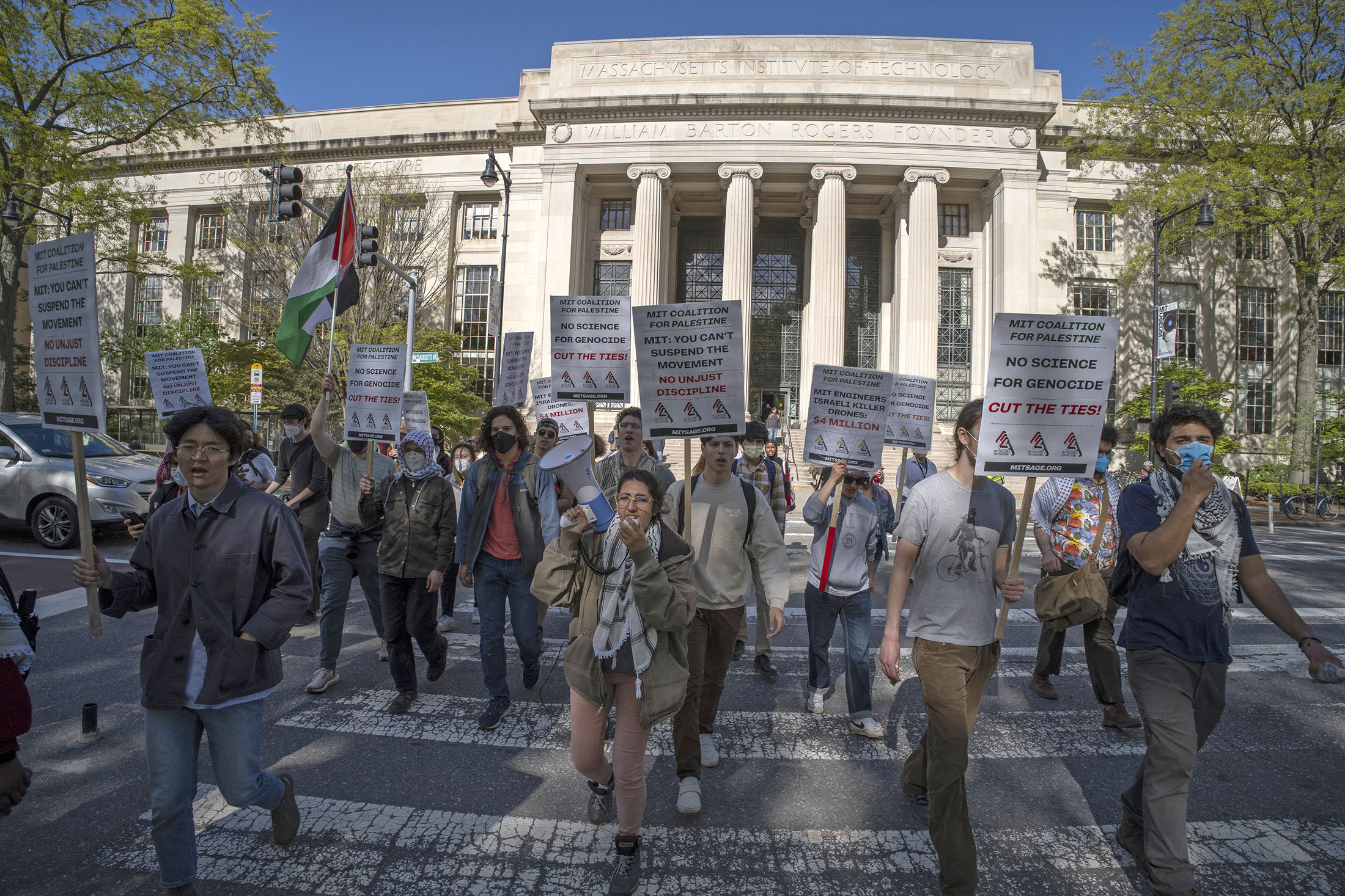 在马萨诸塞州剑桥市的麻省理工学院,抗议者和警察于5月9日发生冲突。
