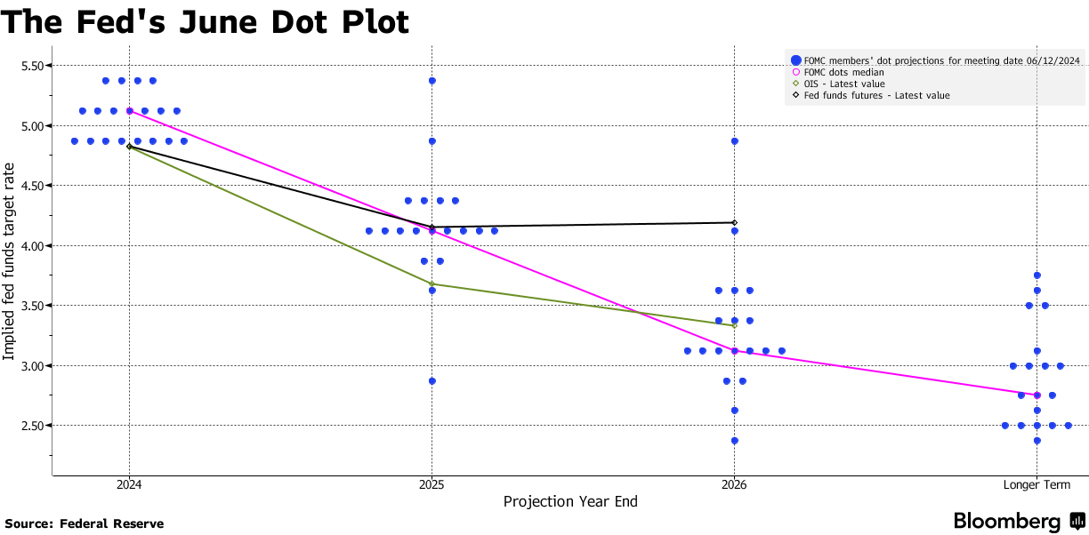 美联储在经济预测摘要中的所谓“点阵图”显示,尽管他们预测到2025年会有更多的降息,但中央银行家们只计划在今年降息一次。美联储可预测地保持了基准利率不变。