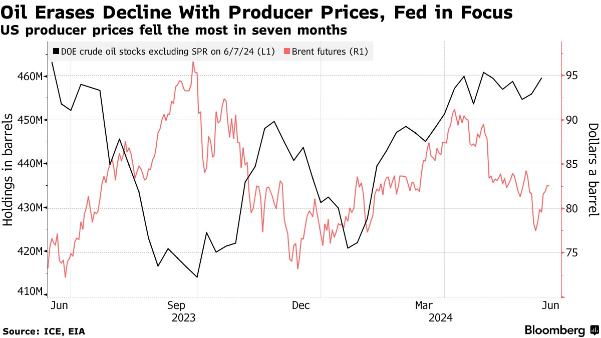 周四的一份报告显示,美国生产者价格连续第七个月下降,这进一步证实了消费者价格涨幅正在放缓。尽管如此,美联储未改变利率并仅预计今年会进行一次降息。西德克萨斯中质原油在涨跌之间波动,最终收于每桶78美元以上。本周期货价格上涨约4%。