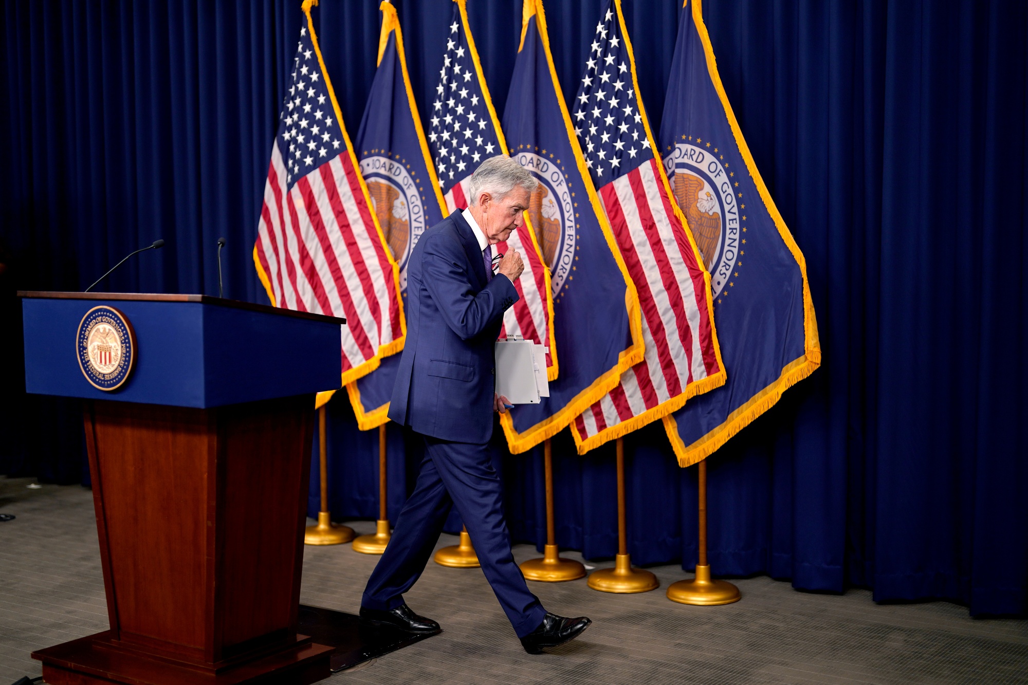 美联储主席杰罗姆·鲍威尔在华盛顿特区召开的联邦公开市场委员会会议后举行新闻发布会,日期为6月12日。