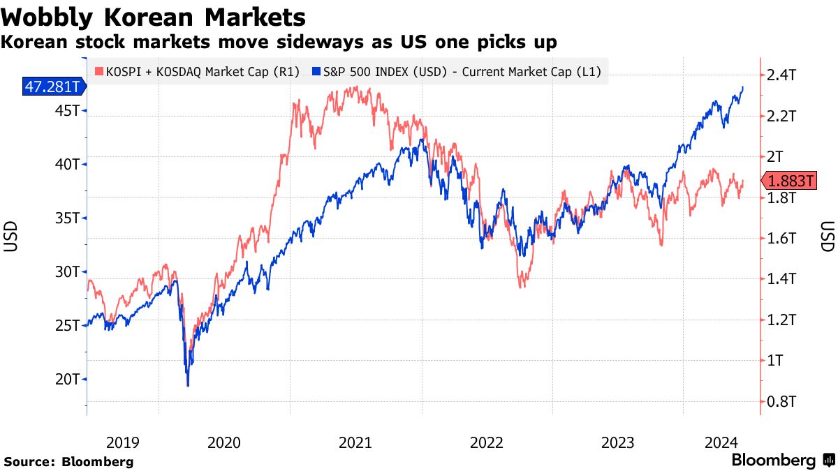 韩国的改革还包括尹的“增值”计划,通过鼓励上市公司提高股东回报来推动股价上涨。该计划于2月宣布,但由于当地指数与外国对手相比走势平稳,投资者对其有效性提出了质疑。