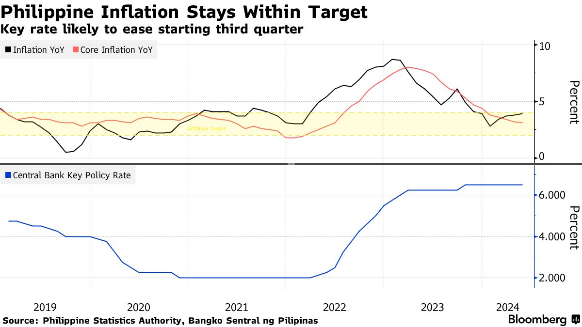 菲律宾年通胀率连续第四个月加速,在5月份达到3.9%,尽管今年的平均水平仍在央行的目标范围内。然而,菲律宾总统费迪南德·马科斯二世周三表示,尽管通胀率处于“几乎可控制的水平”,但仍然是该国的“最大问题”,这是由全球价格上涨带来的,超出政府控制范围。