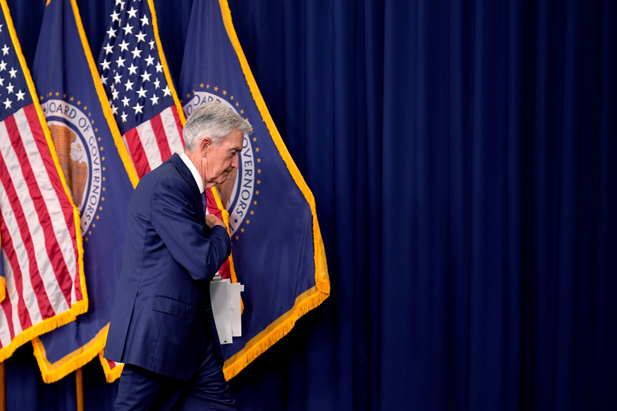 杰罗姆·鲍威尔在华盛顿特区参加FOMC会议后举行新闻发布会后离开,时间是6月12日。