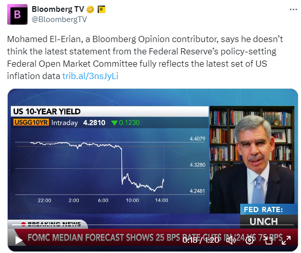 米歇尔和埃尔-艾里安都认为点阵图可能没有考虑到CPI数据中蕴含的乐观情绪。当被问及联邦公开市场委员会成员是否可以修改他们的点时,鲍威尔承认了这一点。他说,他们有这个选择,然后详细说明。