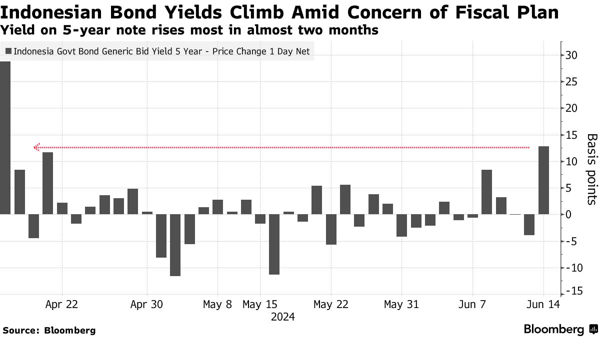 印度尼西亚政府债券下跌,5年期票据收益率周五上涨13个基点,至7.05%,为两个月来最大涨幅。印尼盾兑美元汇率下跌0.7%,至16,375盾,为2020年以来最低水平。