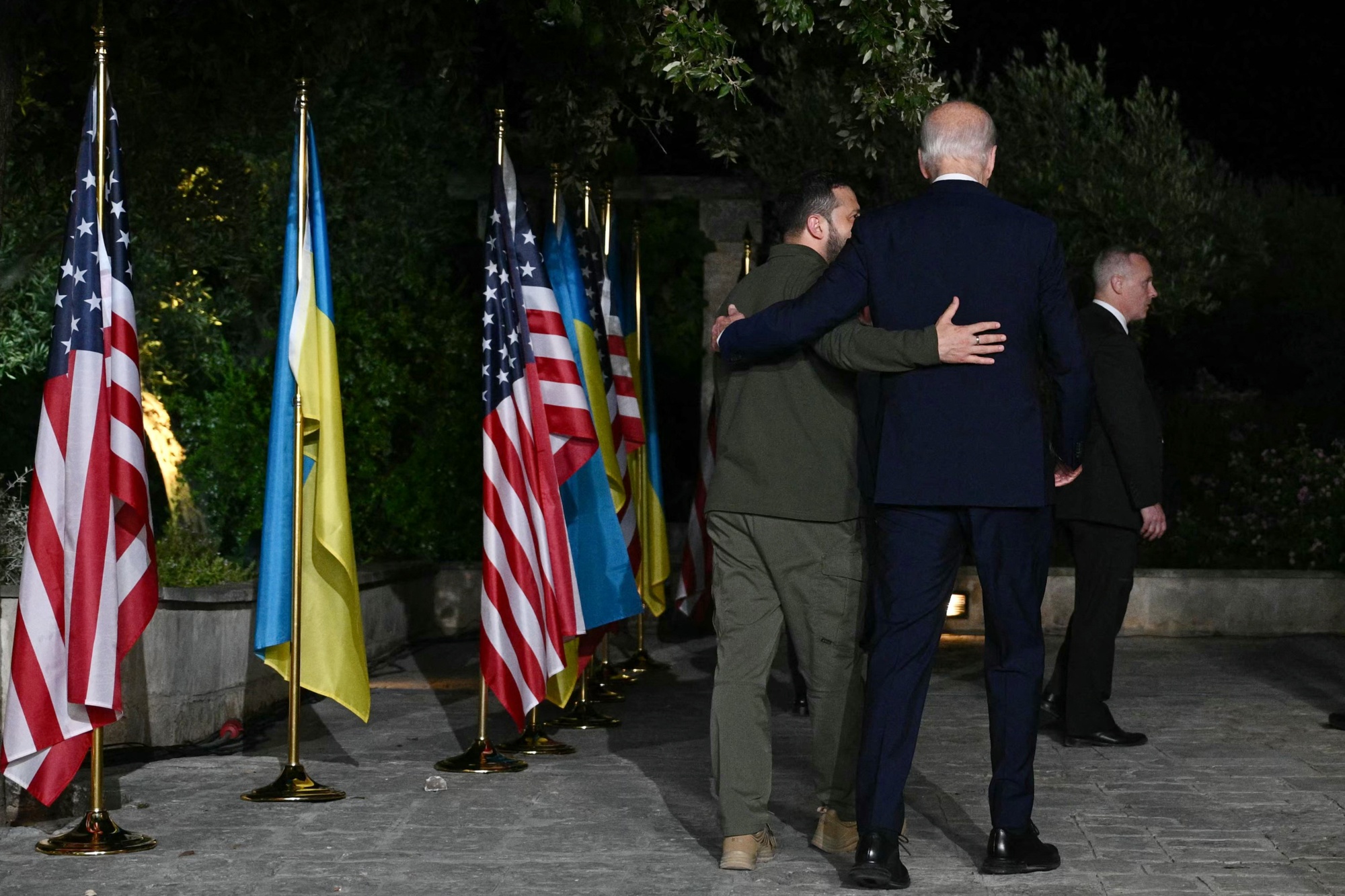 弗拉基米尔·泽连斯基和乔·拜登在6月13日意大利萨韦莱特里G7峰会期间签署安全协议后离开。