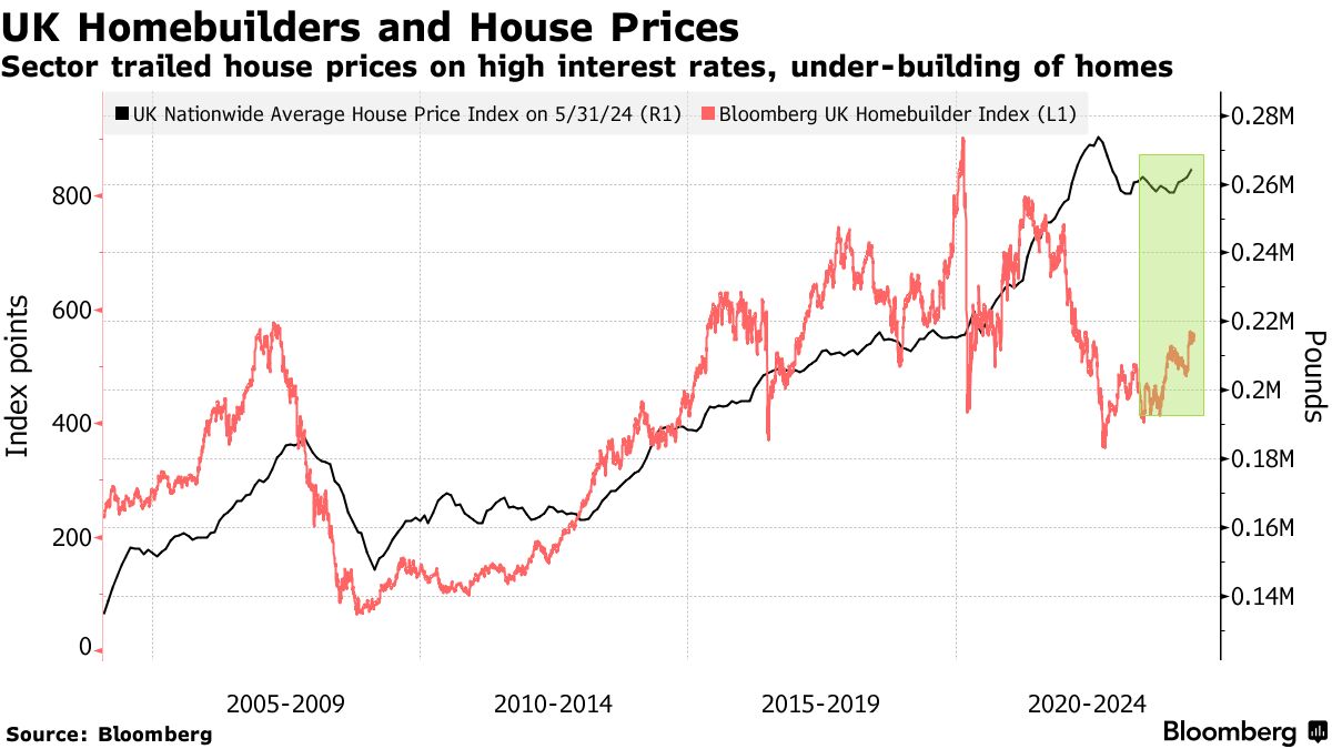 “住房可能是即将到来的选举的核心问题,重点是负担得起的住房,为开发解锁土地和改革规划系统,”摩根大通公司的策略师Mislav Matejka领导的团队表示,在英国股票中持有超配头寸,偏好国内股票。“在降息初期,房地产开发商通常会出现转机。”