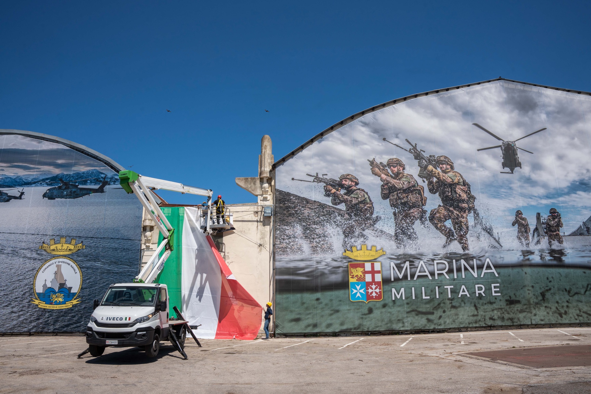 工人在G-7峰会前在意大利海军基地外安装国旗。摄影师:弗朗西斯卡·沃尔皮/彭博社### 虚伪指控