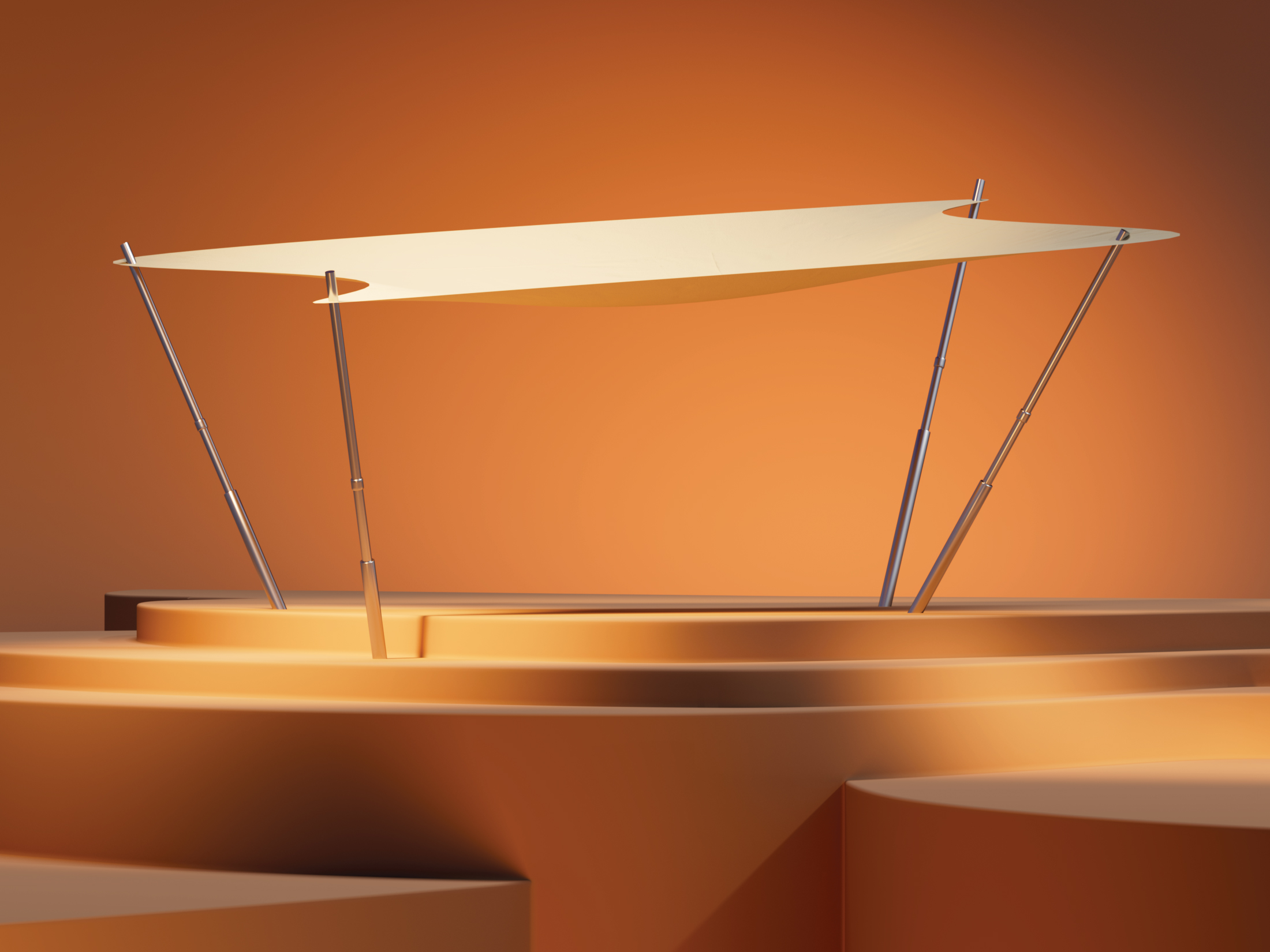 遮阳篷。插图:迈克尔·马尔切夫斯基为彭博商业周刊绘制遮阳篷像在游乐场看到的遮阳篷,白色织物被拉伸在小型或中型公园的部分区域上,提供遮蔽并反射阳光。