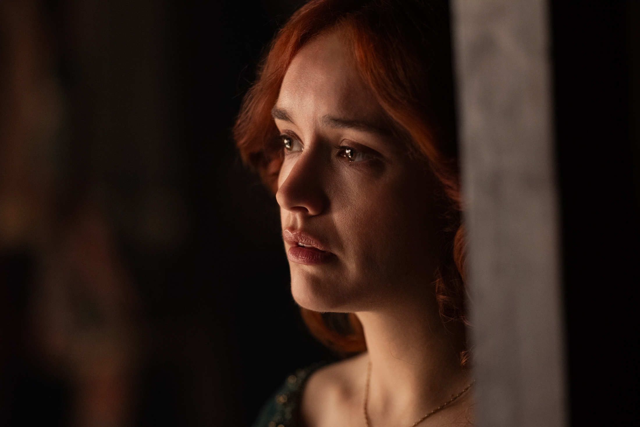 《龙之家》第二季中的Alicent Hightower和Larys Strong的一幕。龙之家。