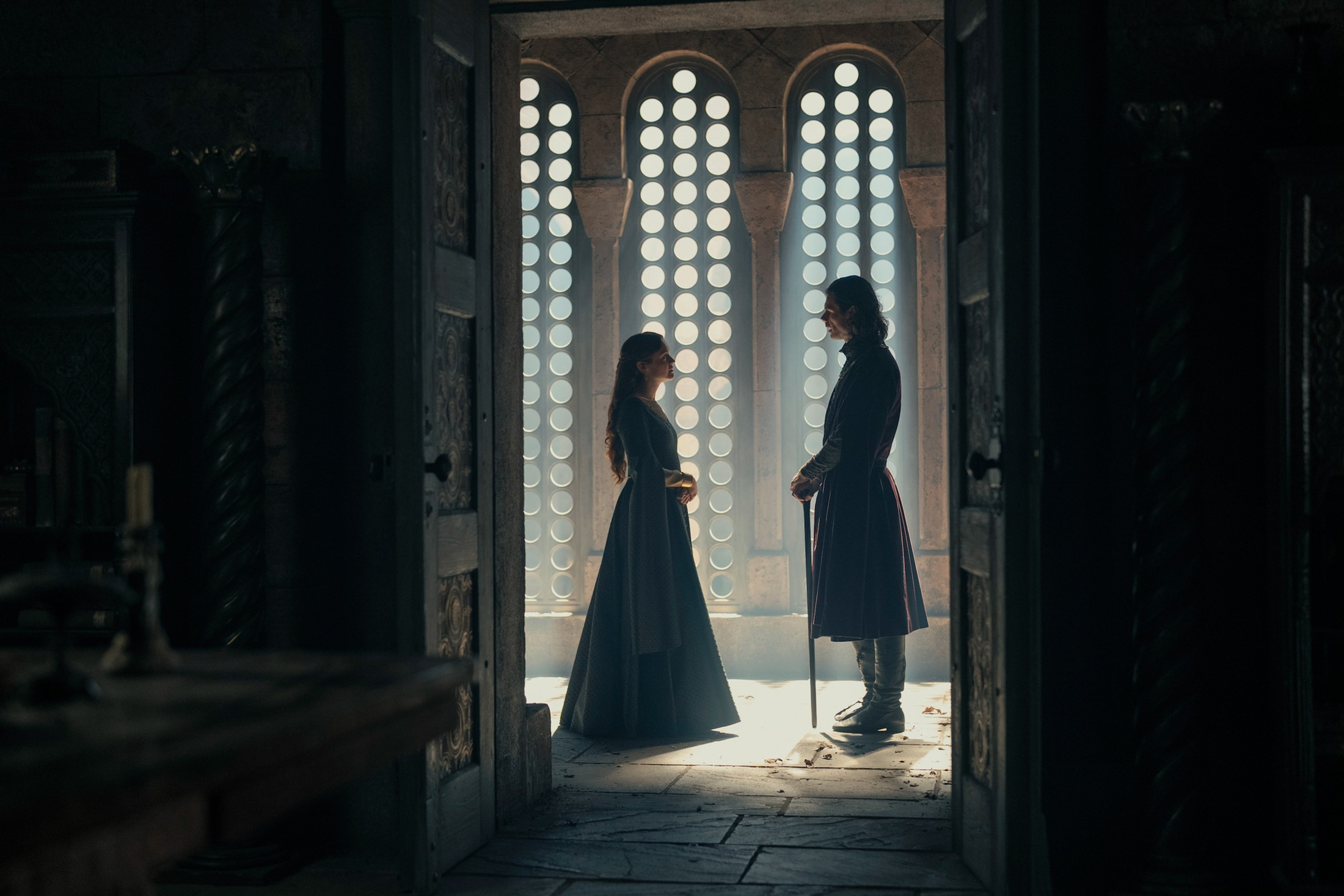 赫尔的艾林(Abubakar Salim)和科利斯·维拉利翁勋爵(Steve Toussaint)。来源:HBO第二季从这场悲剧的余波中展开。蕾妮拉正在悲痛,而她的丈夫兼叔父,渴望权力的戴蒙·坦格利安(Matt Smith),在寻求复仇。(HBO的维斯特洛充满乱伦。)艾丽森感到内疚,但也有自己的问题,尤其是艾贡是一个脾气暴躁且不称职的统治者。