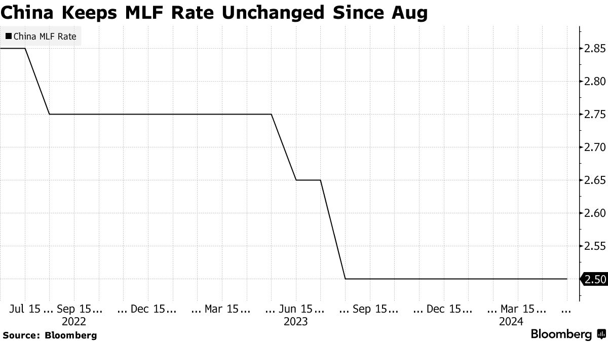 在彭博调查中,针对中国人民银行周一决定关于所谓的中期借贷便利利率的调查中,有21%的受访者(14人中的3人)表示他们预计会降息。这与5月份的10%以及4月份没有人预计会降息相比。