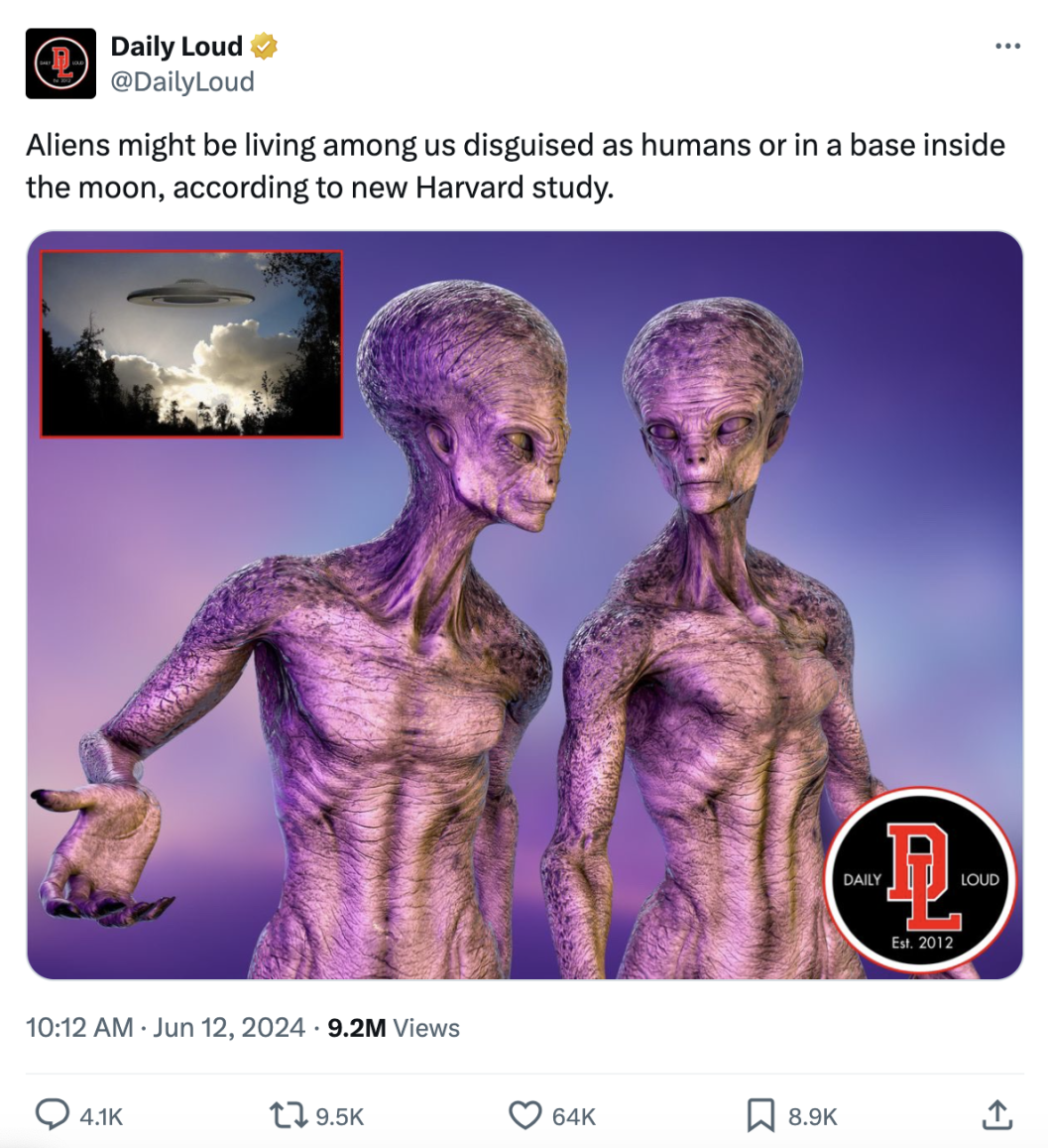 明确地说,这项哈佛研究尚未经过同行评审,因此最终可能完全是胡说八道。但是当涉及到UAPs,即UFO的新首字母缩写(代表未解释的异常现象),“你不必认为它们是外太空生物才能意识到它们对国家安全构成威胁,”泰勒·考恩写道。“至少,一些经验丰富的军事飞行员持有更具体的与外星人相关的假设,这表明军方并未有效处理信息。”