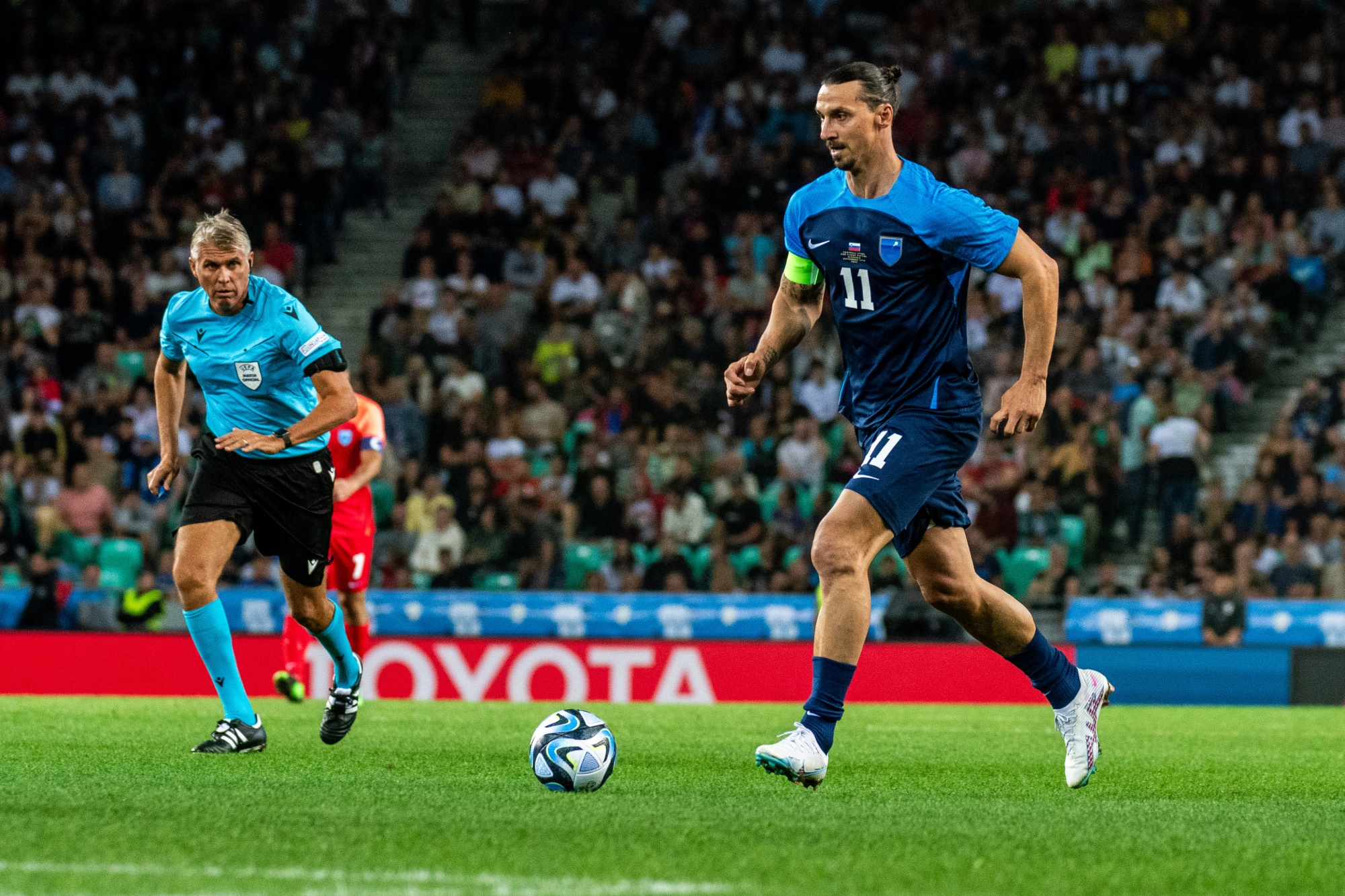 2023年,Zlatan Ibrahimovic在卢布尔雅那的一场慈善比赛中。