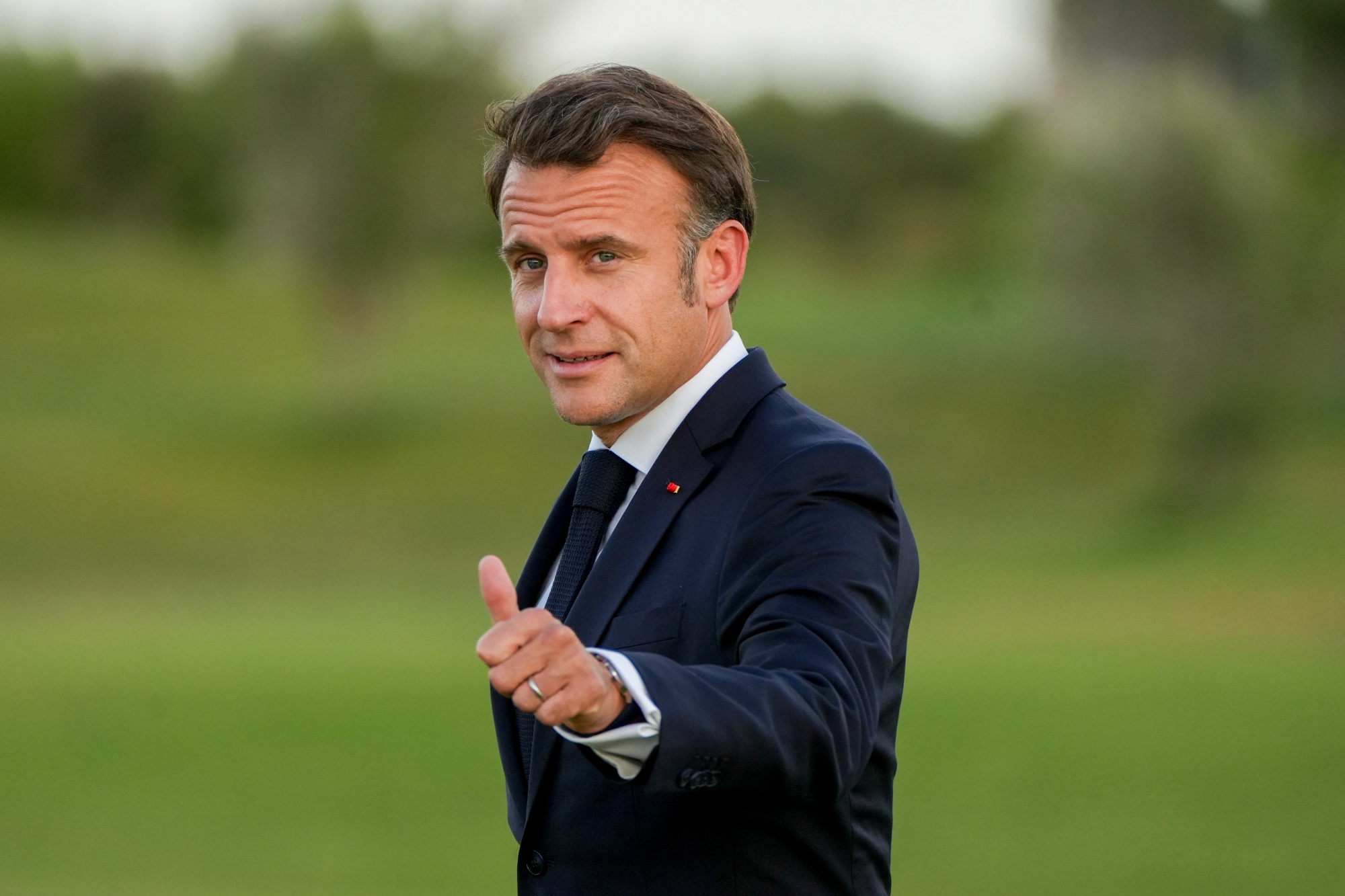 埃马纽埃尔·马克龙在2024年6月13日星期四在意大利萨韦莱特里的博尔戈埃纳齐亚度假村举行的七国集团(G-7)领导人峰会开幕式上。
