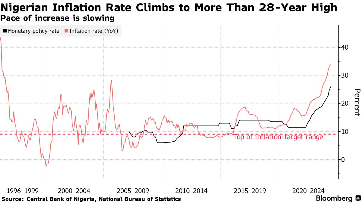 尼日利亚通胀率因食品成本上涨而攀升至28年来的最高水平 - 彭博社