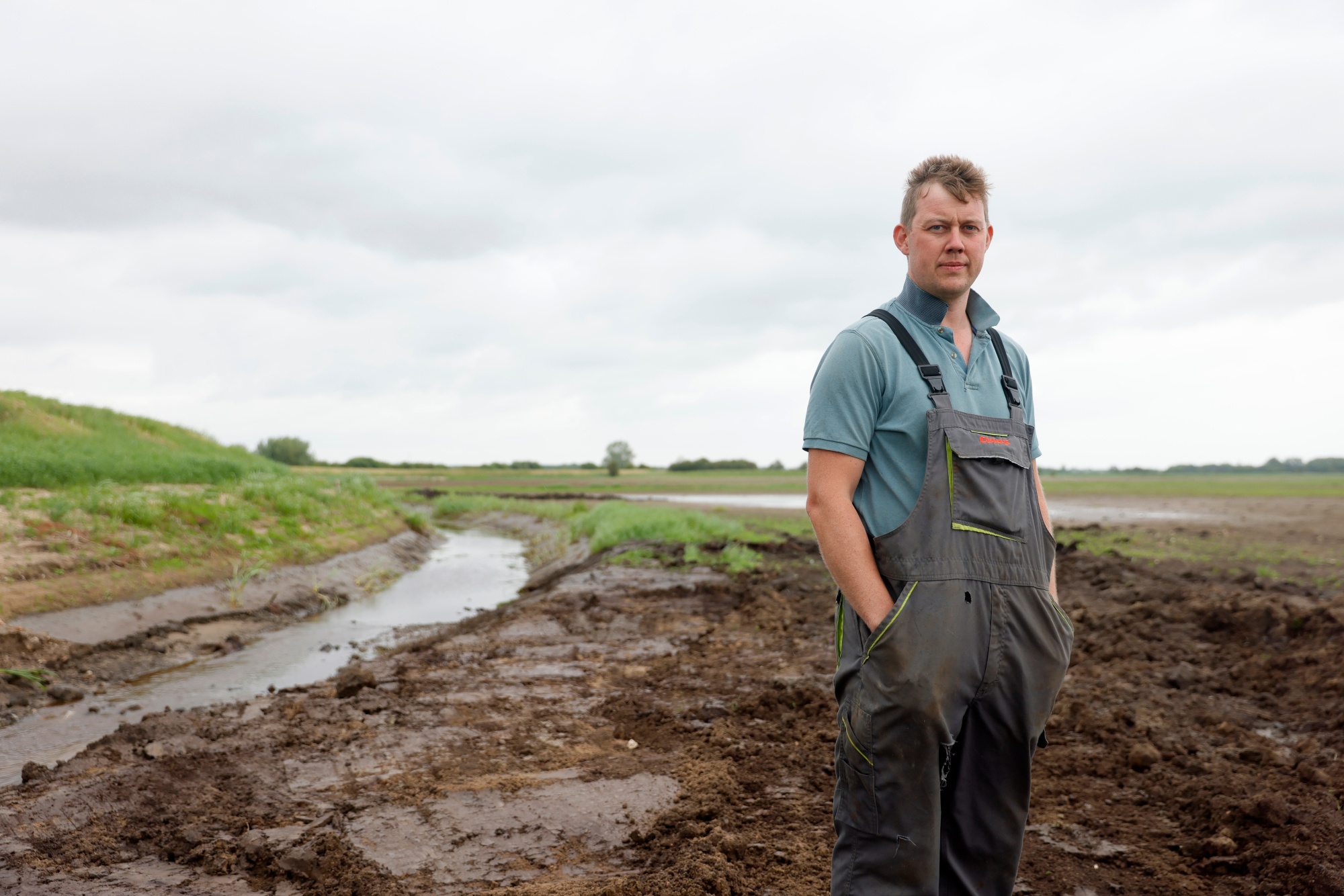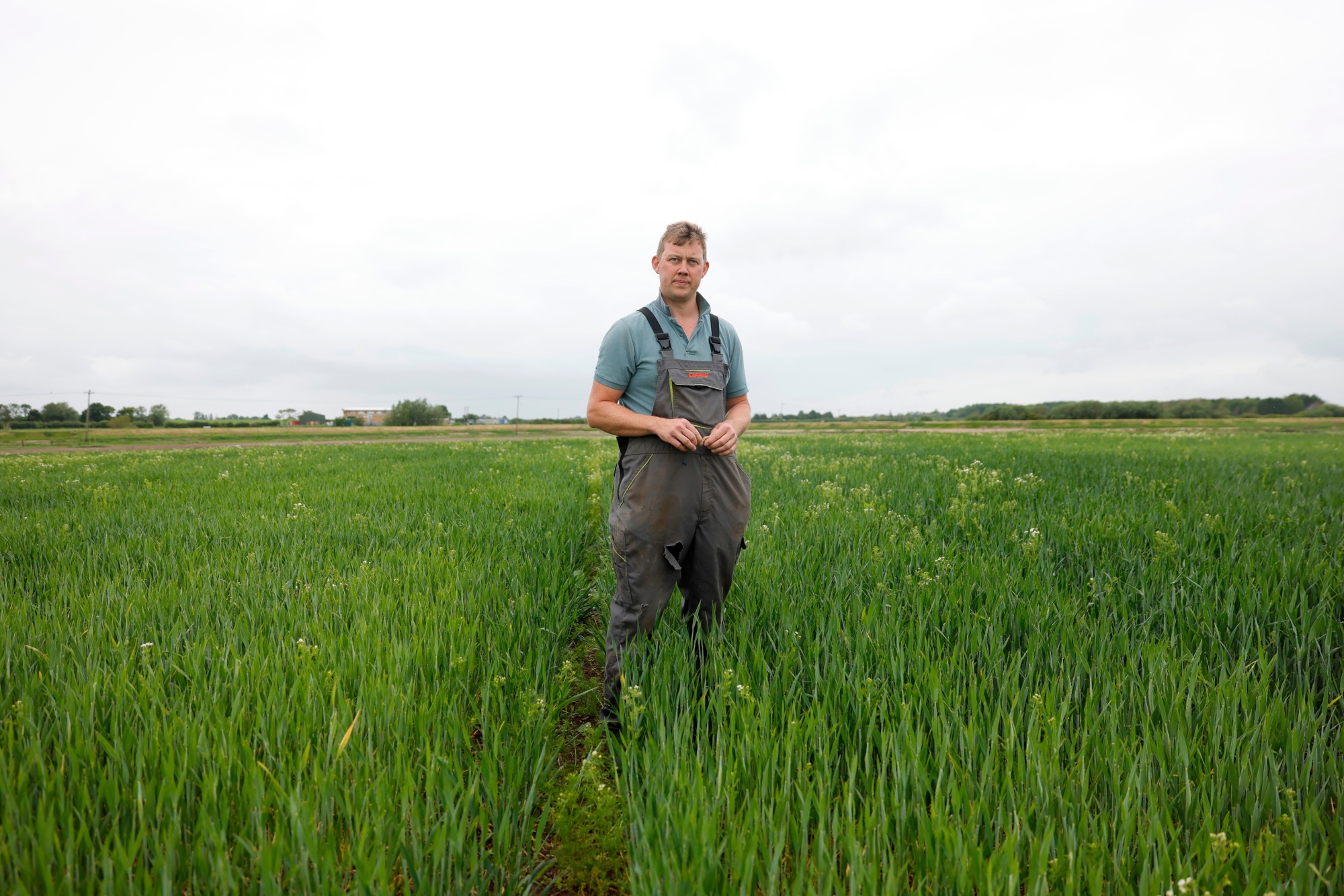 亨利·沃德,英国林肯200英亩的肖特渡轮农场所有者,于6月4日。沃德的农场在2023年10月由风暴巴贝特带来的强降雨后的六个月内两次被淹没。