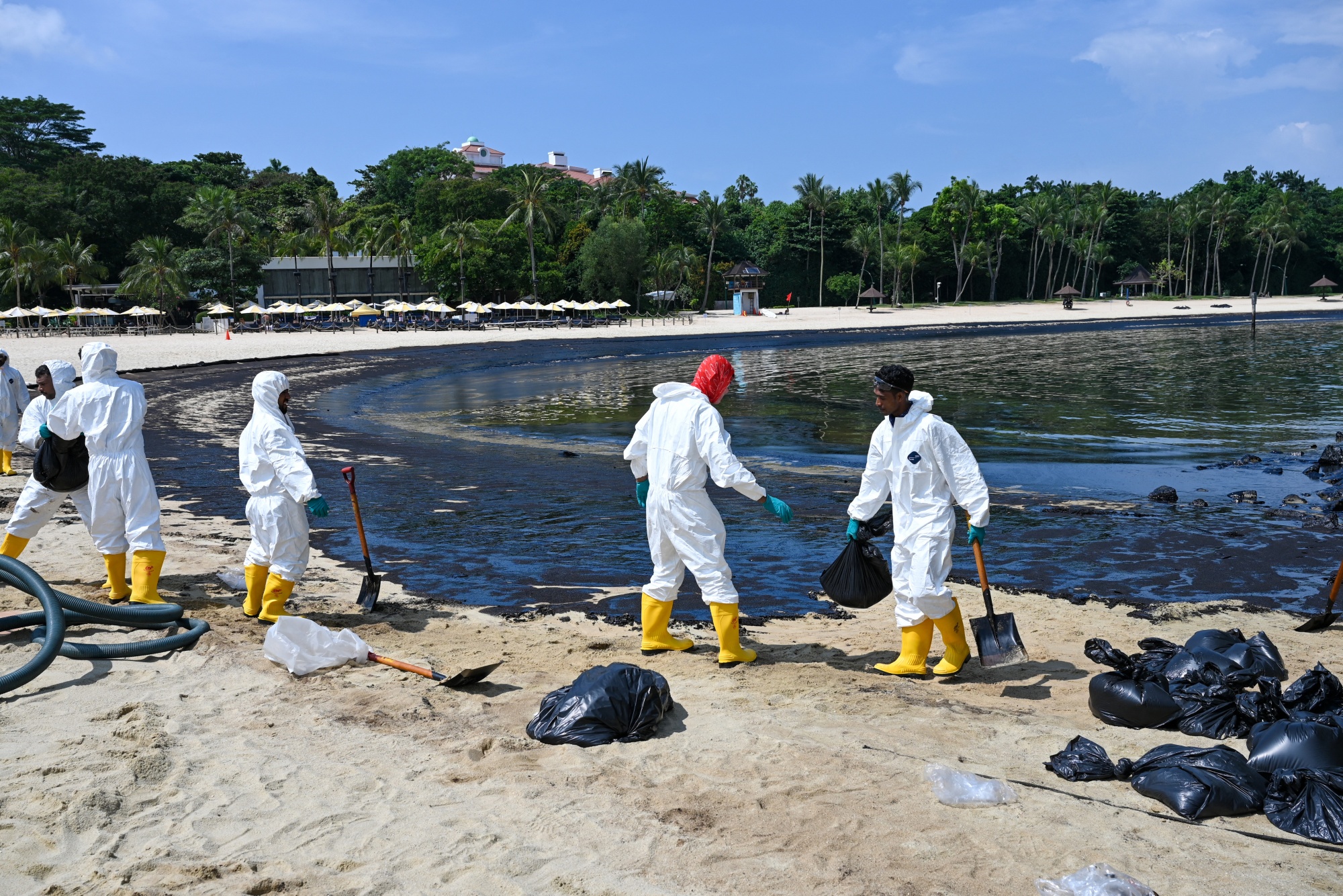 政府声明称,潮流将处理过的油带到了靠近东部国际机场的圣淘沙和东海岸公园的海滩,距离超过30公里(18英里)。声明没有说明泄漏了多少油。