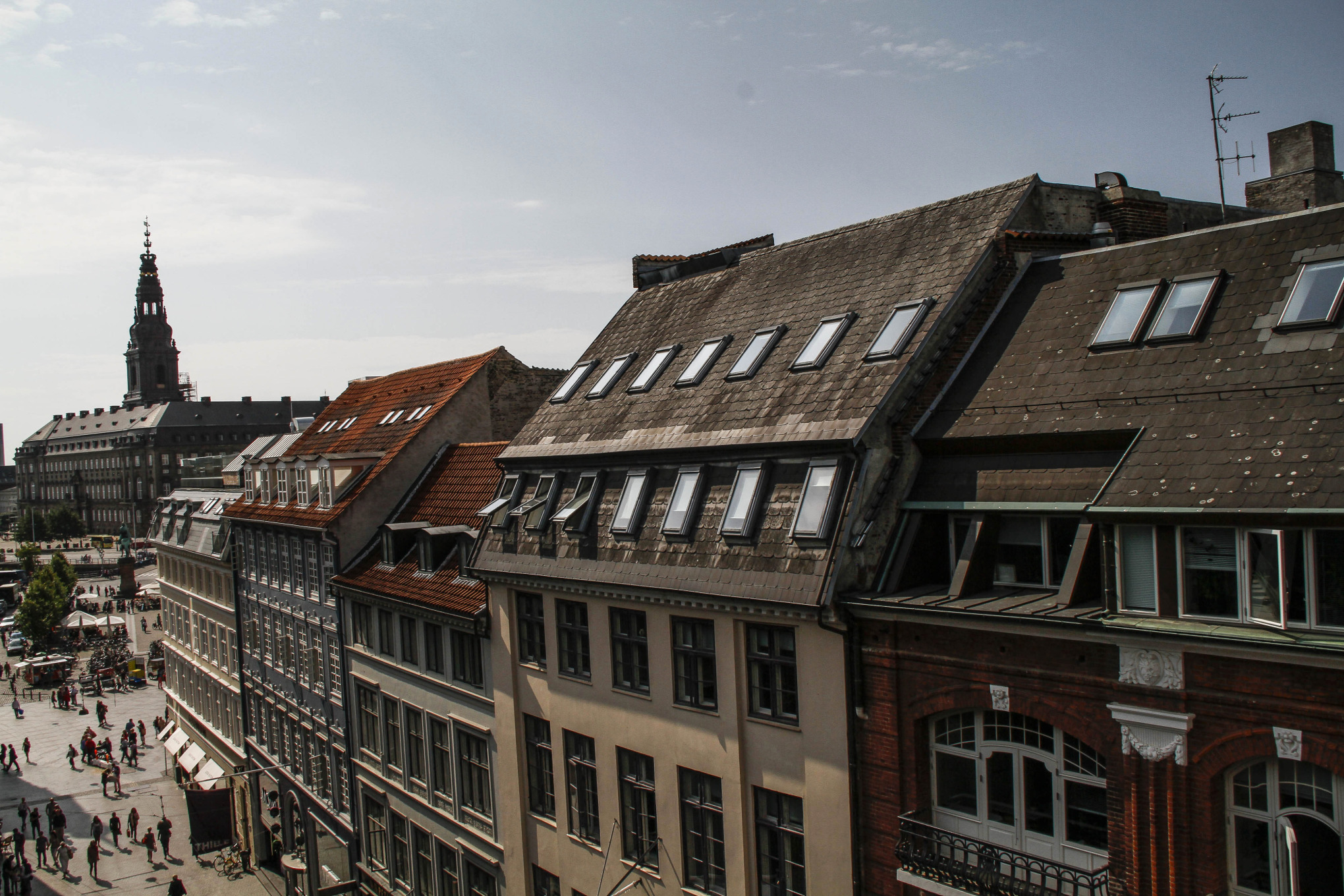 丹麦哥本哈根中央议会左侧的城市天际线。