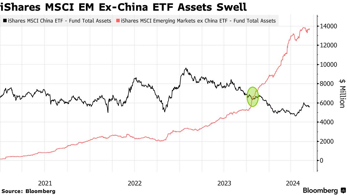 尽管MSCI公司在2017年推出了其排除中国的新兴市场指数,但在过去三年中,由于北京实施严格的防疫限制和经济复苏乏力,排除亚洲最大经济体的策略逐渐受到关注。