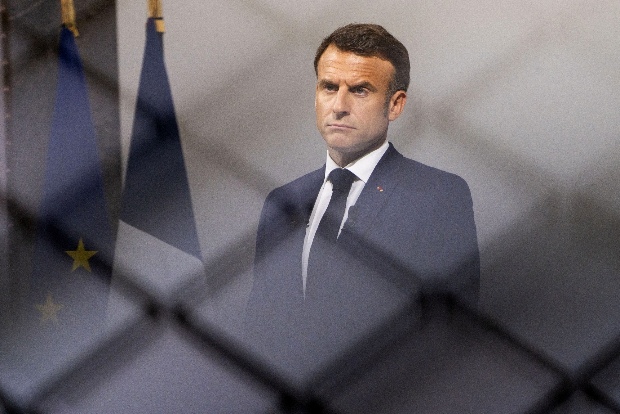 埃马纽埃尔·马克龙在法国巴黎举行的新闻发布会上讲话,日期为6月12日。摄影师:Nathan Laine/Bloomberg