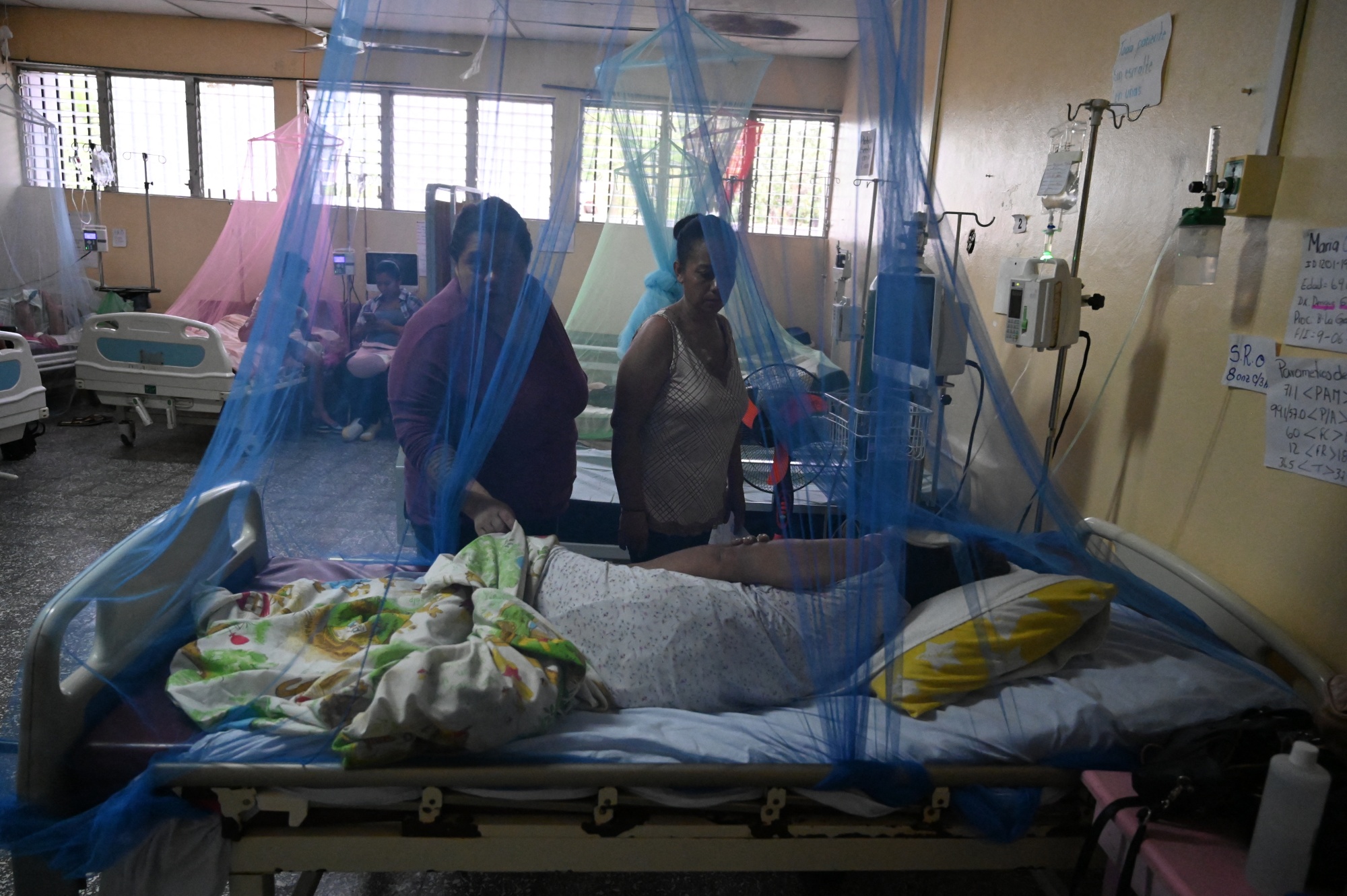 亲戚们在洪都拉斯拉巴斯的一家医院探望一名患登革热的女性,随着一场后新冠疫情时期的疾病激增席卷全球。