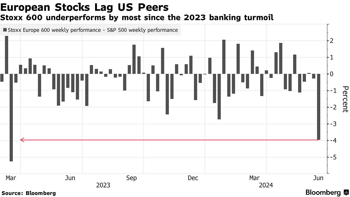 这些冲击波已经在欧洲市场上感受到,该地区的股票上周下跌了2.4%,明显表现不佳,远远落后于美国同行。这次降级发生在花旗预测泛欧洲斯托克斯欧洲600指数可能在2025年中期前进一步上涨14%至创纪录新高仅仅一周之后。