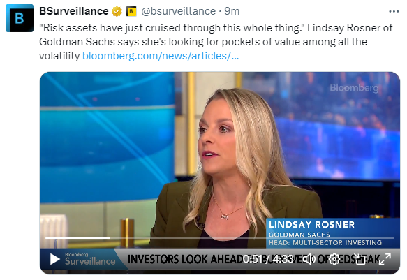 高盛的林赛·罗斯纳表示,这种情况有点像很多证券都“被定价为完美”,