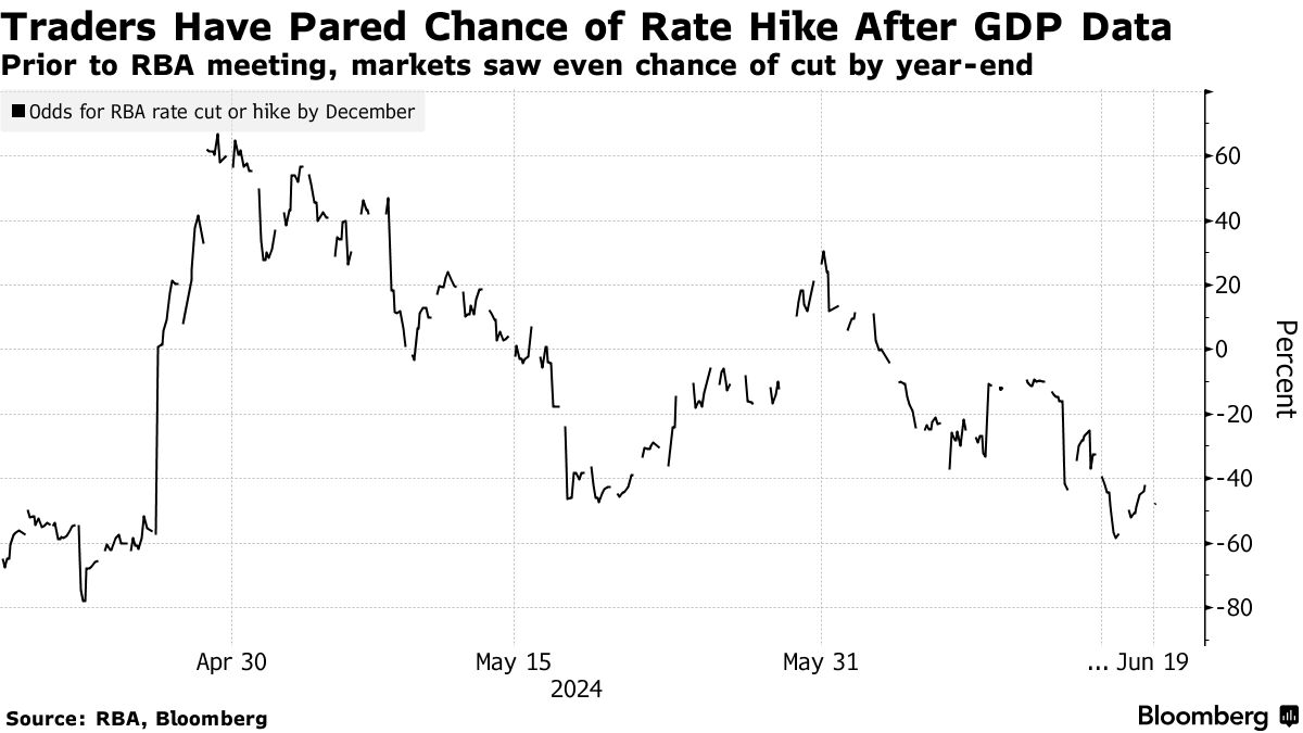 决定公布后,澳元基本持平,而政策敏感的三年期债券收益率略有上升,交易员在调整对今年政策宽松的押注。货币市场预计到12月,降息的可能性不到40%,低于发布前的50%。