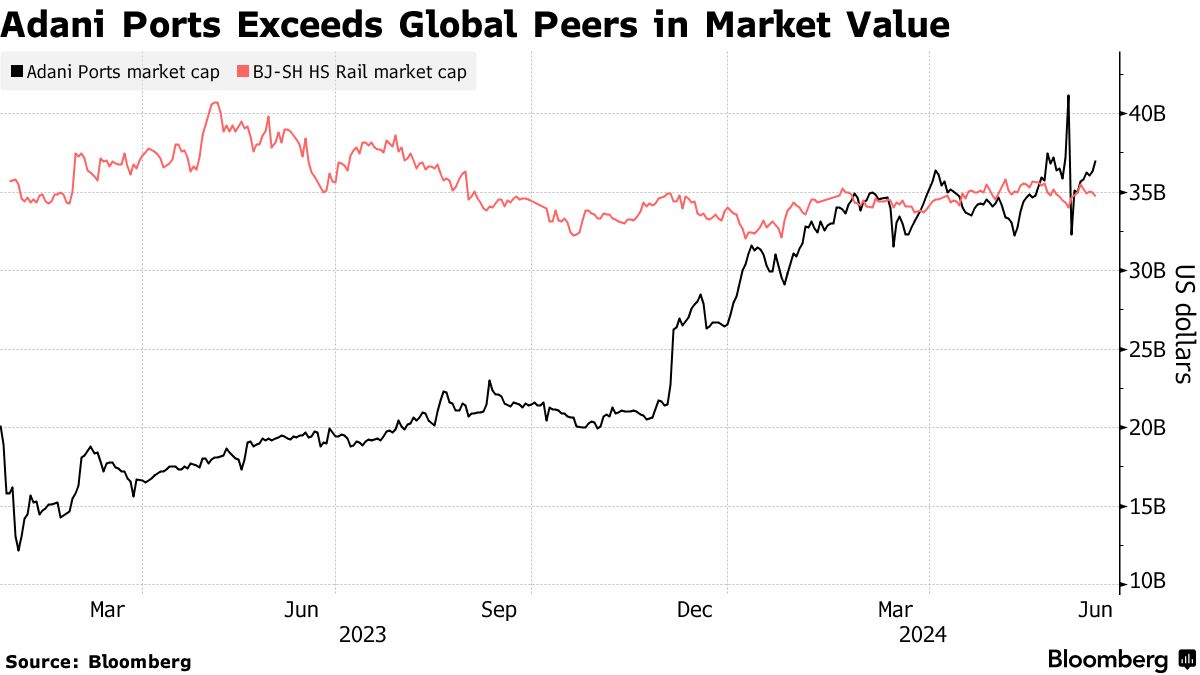 安达尼港口及特区有限公司的市值已攀升至约370亿美元,超过同行的北京上海高速铁路公司。不断增长的货物量和进入印度基准S&P BSE Sensex指数可能会延续其涨势。