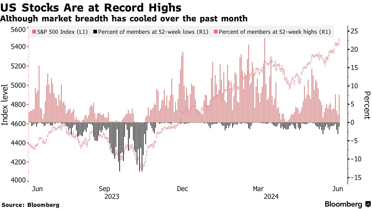 受人工智能热潮推动,以及对通胀放缓前景乐观,美国股市已经上涨至创纪录高位。今年标普500指数上涨15%,推高了该基准未来12个月的市盈率至21,远高于长期平均水平16,根据彭博社编制的数据。