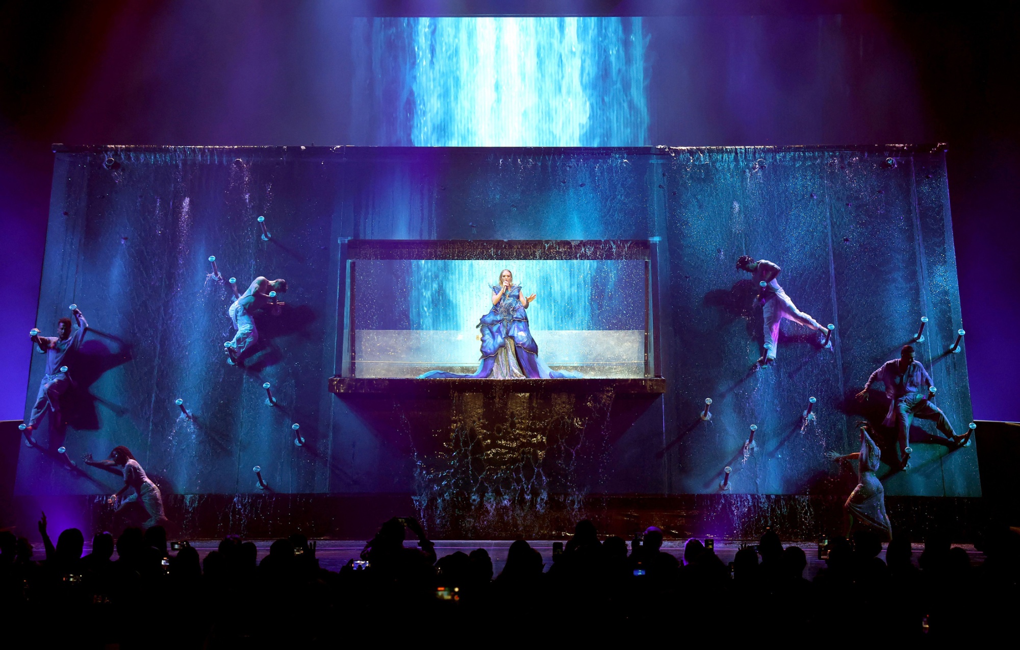 安德伍德在拉斯维加斯世界度假村的常驻演出于3月6日。摄影师:凯文·马祖尔/盖蒂图片社除了亲密感,常规场馆还允许舞台设计,这在路上很难复制。例如,安德伍德的演出包括空中飞人、一辆燃烧的吉普车和在20英尺高瀑布下表演的结尾。“我们可以在舞台上做一些如果我们每晚都必须把演出装车并运输到另一个城市是不切实际甚至不可能的事情,”安德伍德在一封电子邮件中说。