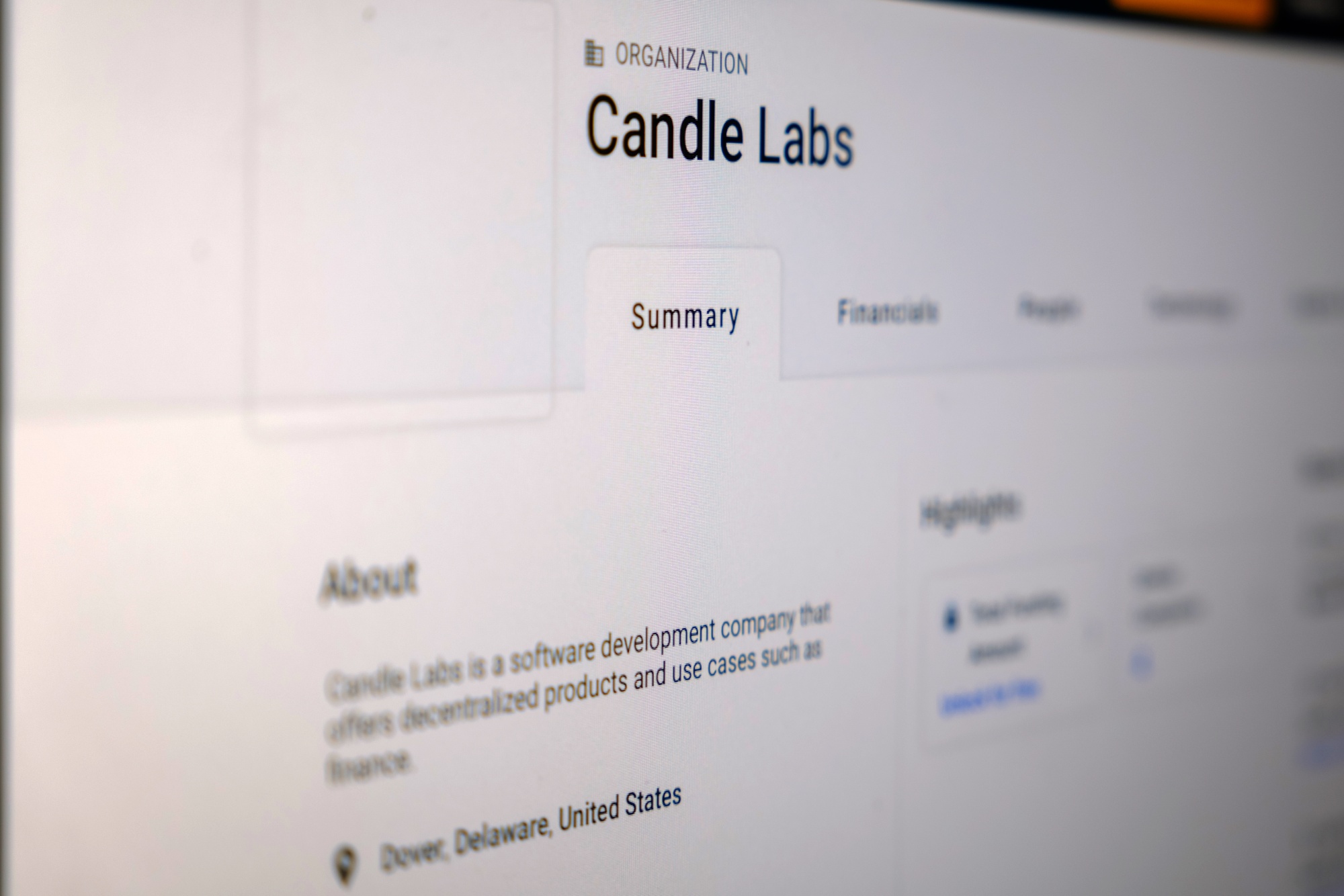 Crunchbase 网站上的 Candle Labs。摄影师:Jose Sarmento Matos/Bloomberg关于 Candle Labs 4800 万美元的错误数据是故意提供还是错误提供给这些数据平台,并不改变这一误传的事实。该公司最终在去年收到美国证券交易委员会的一封信件,暗示其 CNDL 代币是未注册的证券后关闭,Safahi 表示。
