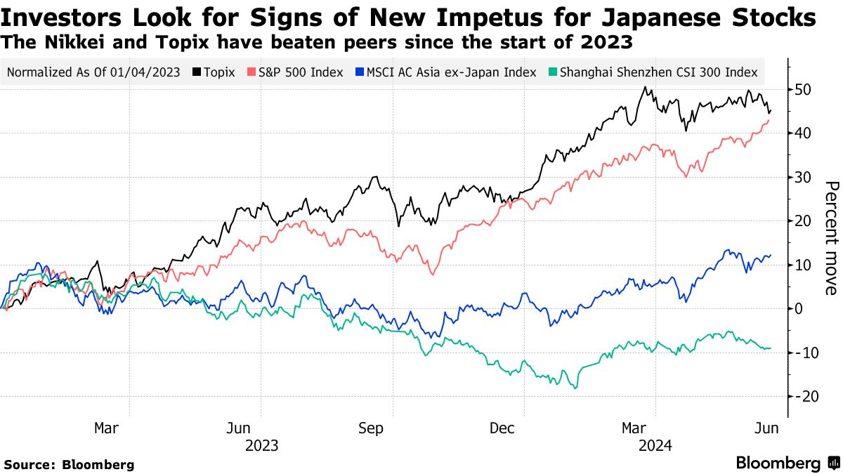 这种转变现在尤为重要,因为投资者将关注点放在企业治理改革上,他们正在权衡日本股市的持续性,自日经225指数今年早些时候创下历史新高以来,股市涨势已经失去动力。随着日本走出几十年的停滞,成为与中国和印度竞争的真正竞争对手,这一点也很重要。