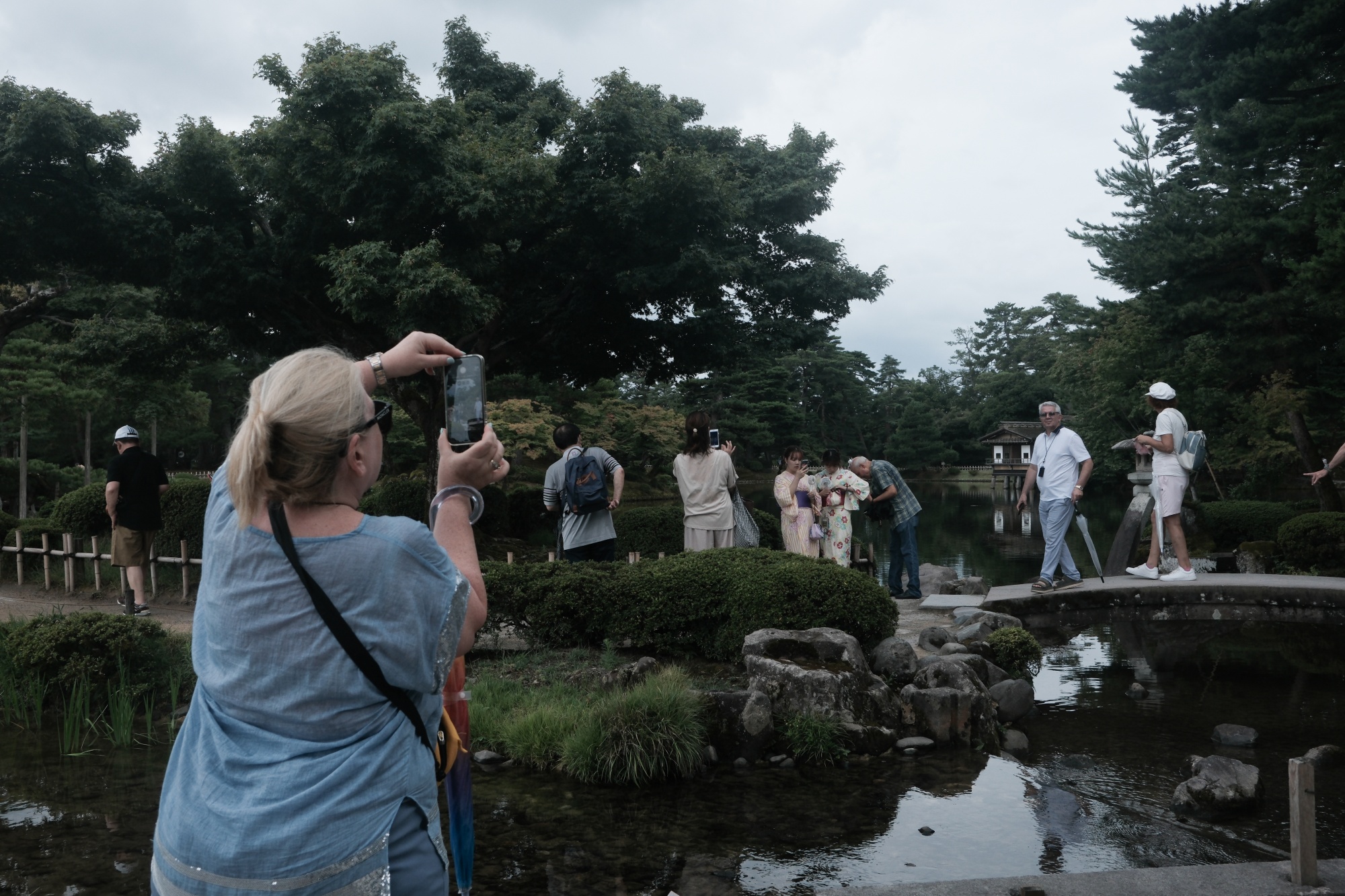 一位游客在金泽的兼六园拍照。摄影师:Soichiro Koriyama/Bloomberg