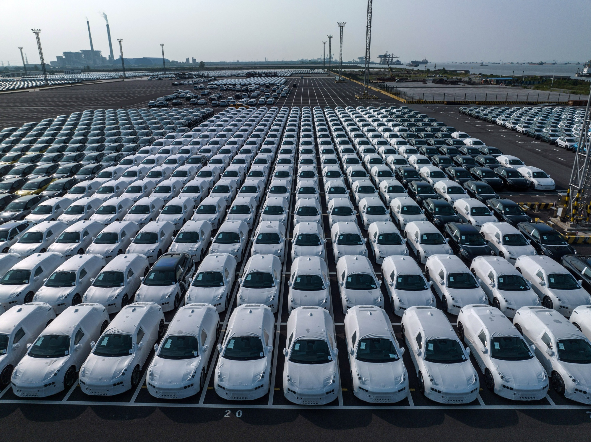 吉利汽车控股有限公司的Zeekr电动汽车在中国太仓港准备运往欧洲。来源:彭博社