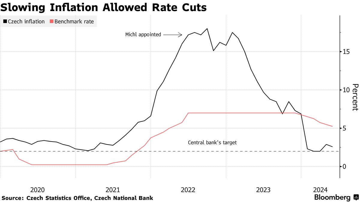 捷克央行行长阿莱什·米赫尔表示通胀斗争尚未取得胜利 - 彭博社
