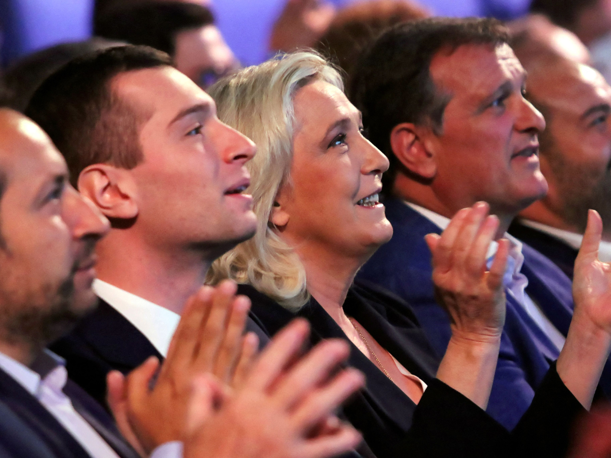 马琳·勒庞和乔丹·巴尔德拉,左二。