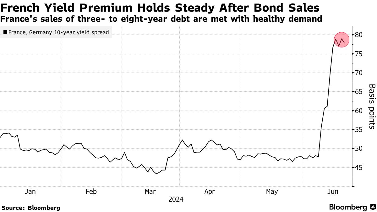 当他们谈话时,法国举行了首次债券发行自马克龙引发金融市场动荡,宣布立法选举之后的第二天,该国因未能控制赤字而受到欧盟委员会的责备。这样的背景凸显了欧元区第二大经济体政治动荡前景受到多少关注。