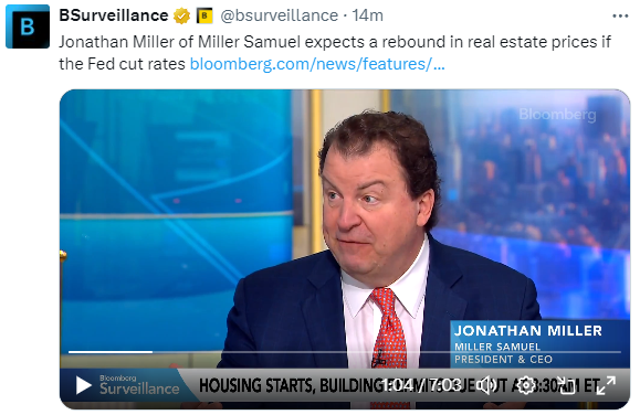 Miller Samuel的Jonathan Miller今天对美国受打击的房地产市场的状况发表了悲观的看法,高利率已经压制了供应,因为许多房主选择留在原地而不是尝试抵押贷款市场。他表示,联邦基准利率下调可能对缓解压力起不了多大作用,因为积压的需求将推高价格。