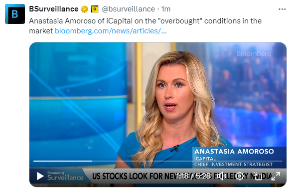 “如果我看看英伟达,如果我看看纳斯达克,如果我看看相对强弱指标,它已经在过去一周或更长时间里一直在尖叫超买了,”她说。“当你遇到这种情况时,必然会发生一些事情,你会有一些整理,你会有一些回调。我确实认为,像英伟达和纳斯达克这样的交易在短期内已经过度拉伸了。”