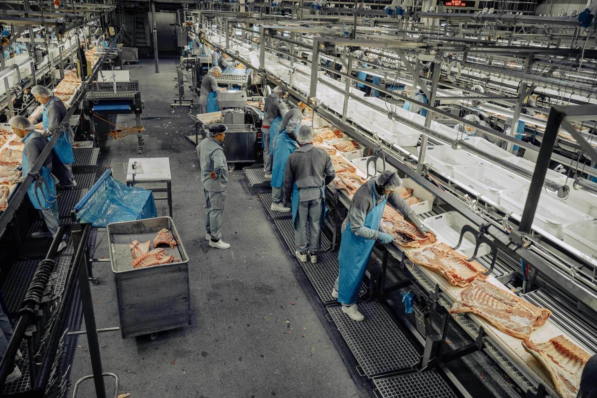 丹麦一家屠宰场的培根生产线。摄影师:Carsten Snejbjerg/Bloomberg
