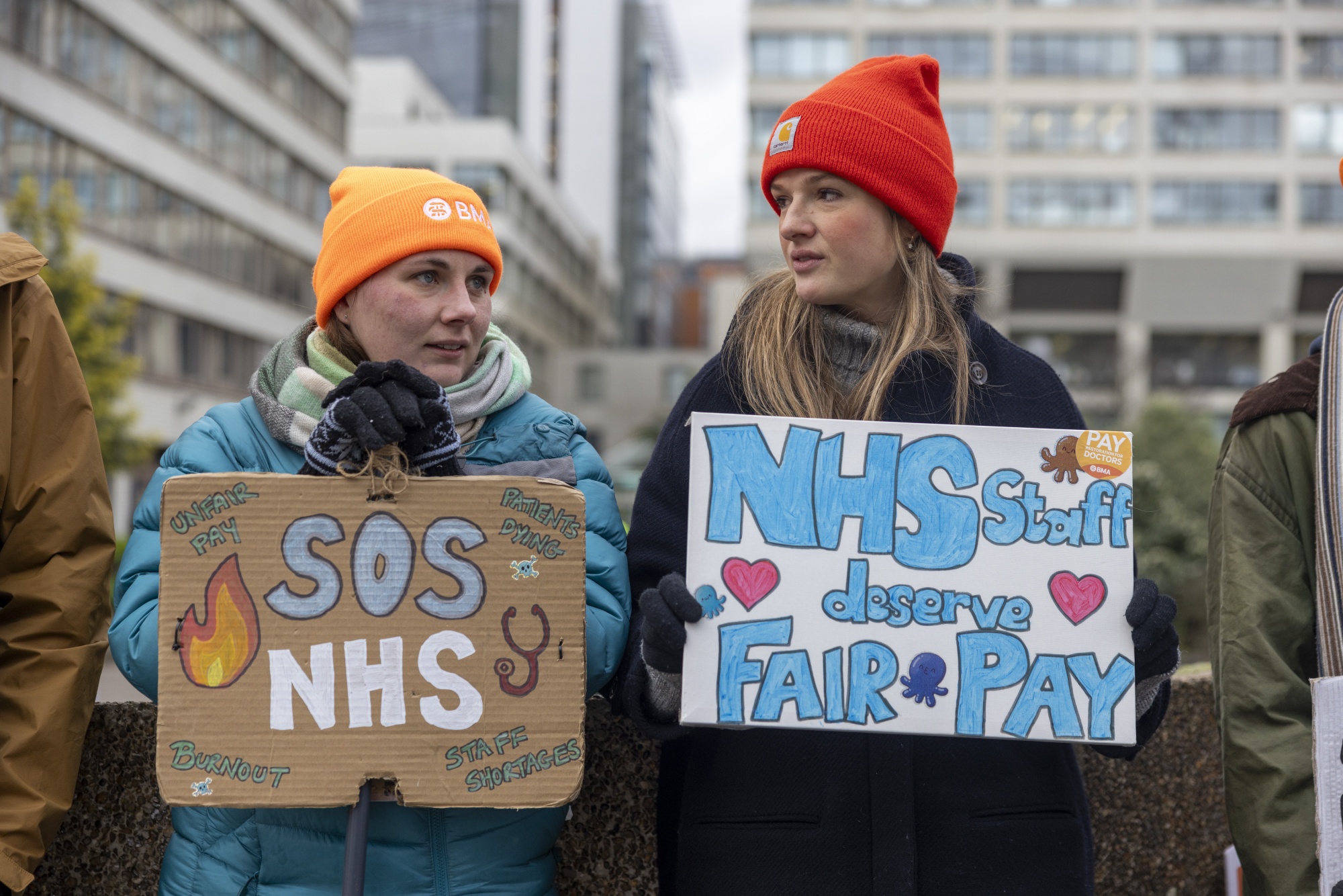 伦敦圣托马斯医院外的罢工中的初级医生。