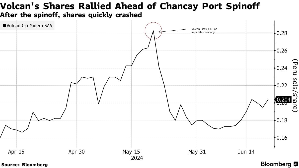 至于 Volcan,该公司的股票在分拆之前大幅上涨,因为其股东自动获得了IPCH股票。然后在IPCH单独上市的那天暴跌。