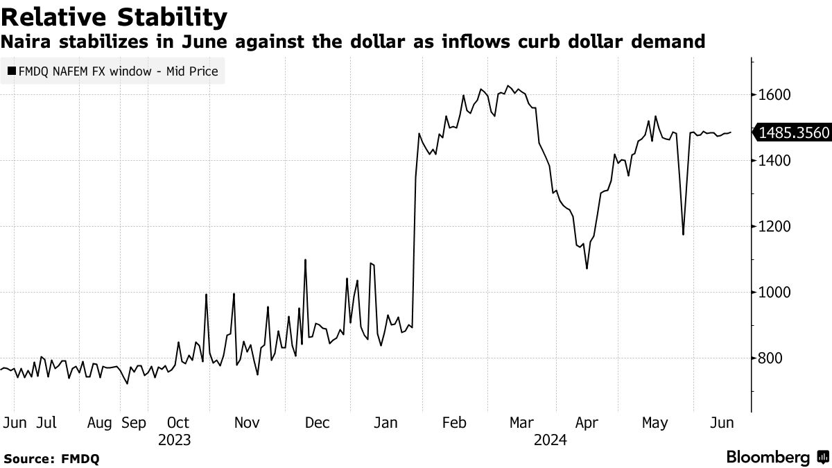 这种新发现的平静是尼日利亚总统博拉·蒂努布一年来放松对货币的控制并使其价值接近街头汇率的改革的一个小胜利。现在,美元流入减少了购买者对外汇的需求,从而抑制了需求和价格扭曲,据策略师称。