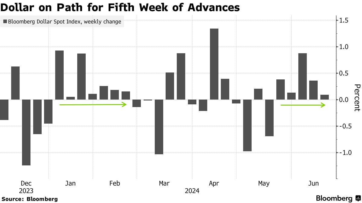 美元强度的一个关键指标正在延续其连续第五周的上涨,因为美联储首次降息的时机仍然不明朗仍然不明朗。